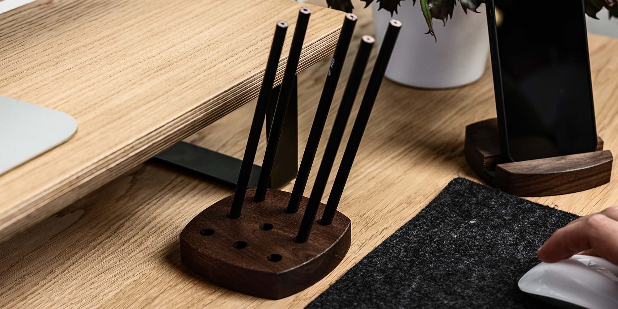 Der minimalistische und funktionale Discarve-Stiftständer ist ein einzigartiges Produkt, das hohe Ästhetik, Stil und Verbundenheit mit der Natur vereint. Es wurde sowohl im Hinblick auf die optimale Organisation des Arbeitsbereichs als auch auf seinen dekorativen Wert entworfen.