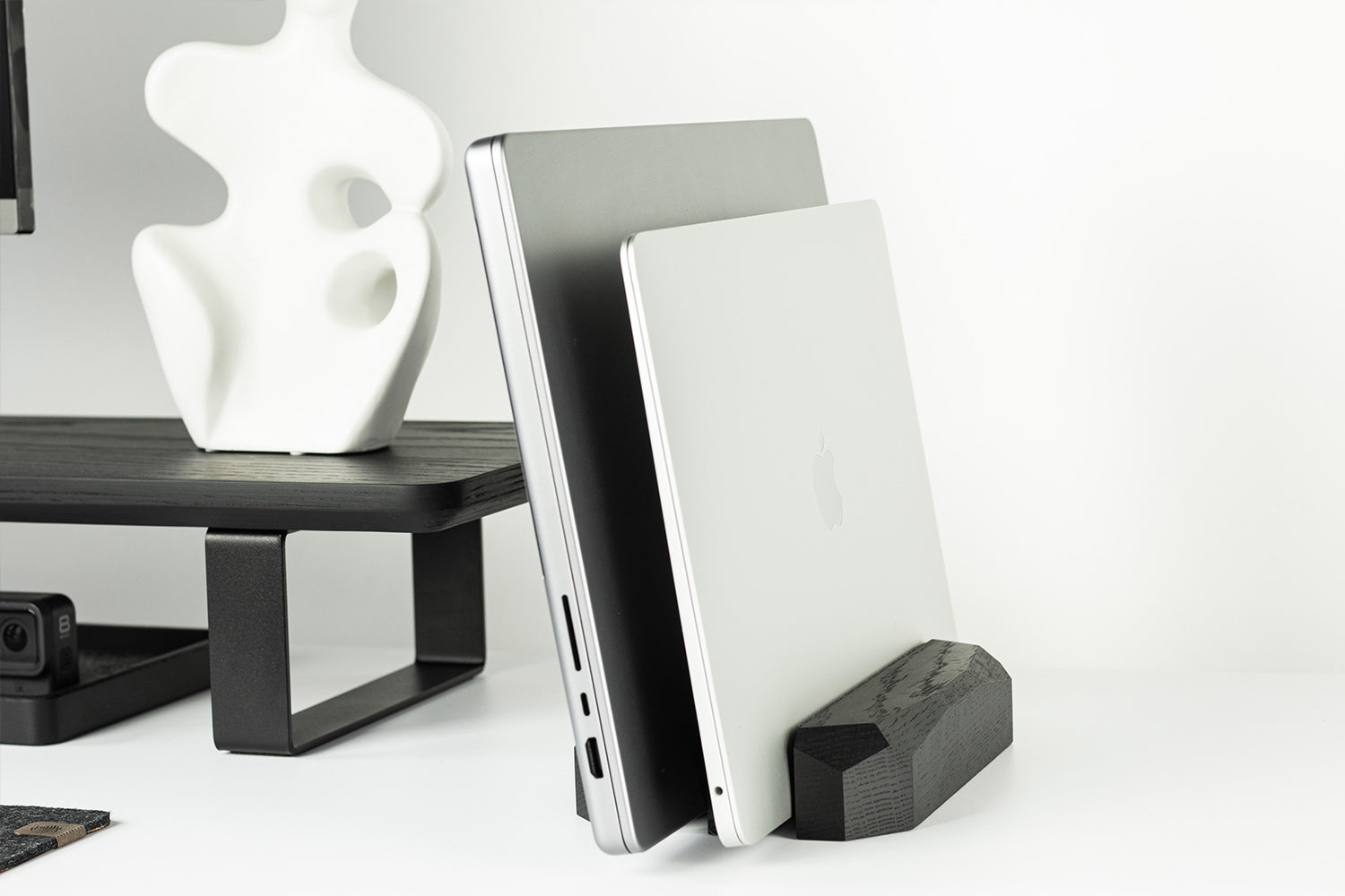 Wenn Sie Ihren Laptop/Ihr Tablet vertikal aufbewahren, sparen Sie Platz auf Ihrem Schreibtisch!