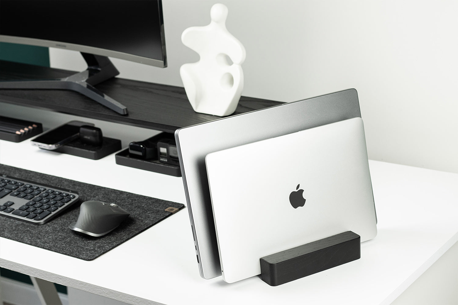 Wenn Sie Ihren Laptop/Ihr Tablet vertikal aufbewahren, sparen Sie Platz auf Ihrem Schreibtisch!
