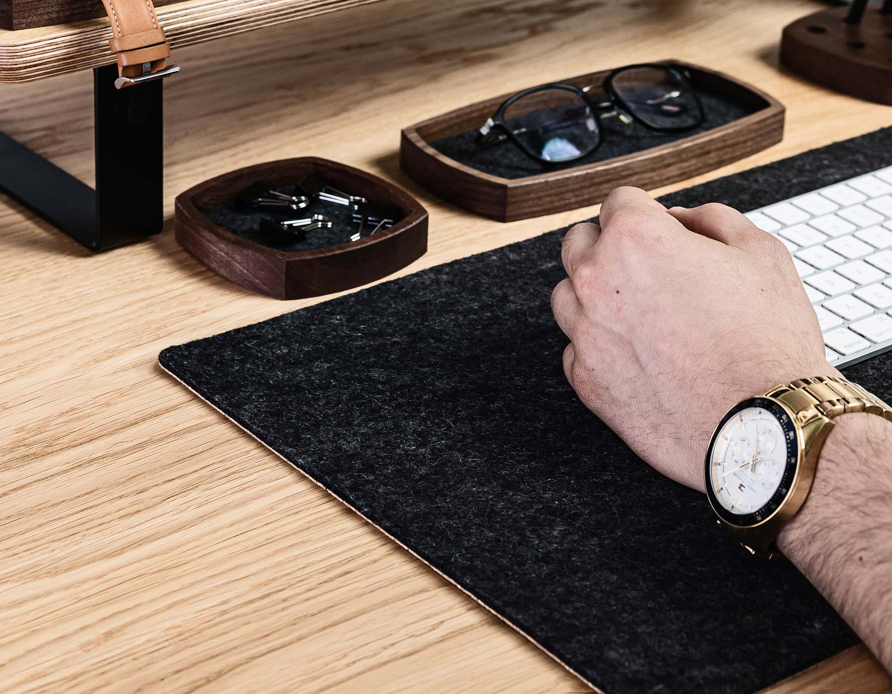 Unser Filzkissen aus Merinowolle ist nicht nur praktisch, sondern auch dekorativ. Zweifellos ist es ein einzigartiger Abschluss der Schreibtischplatte und unterstreicht gleichzeitig das einzigartige Design des gesamten Arbeitszimmers. Dank der Kombination aus schlichtem Stil, zeitloser Eleganz und natürlichen Materialien höchster Qualität eignet es sich perfekt sowohl für Geschäfts- als auch für Privaträume.