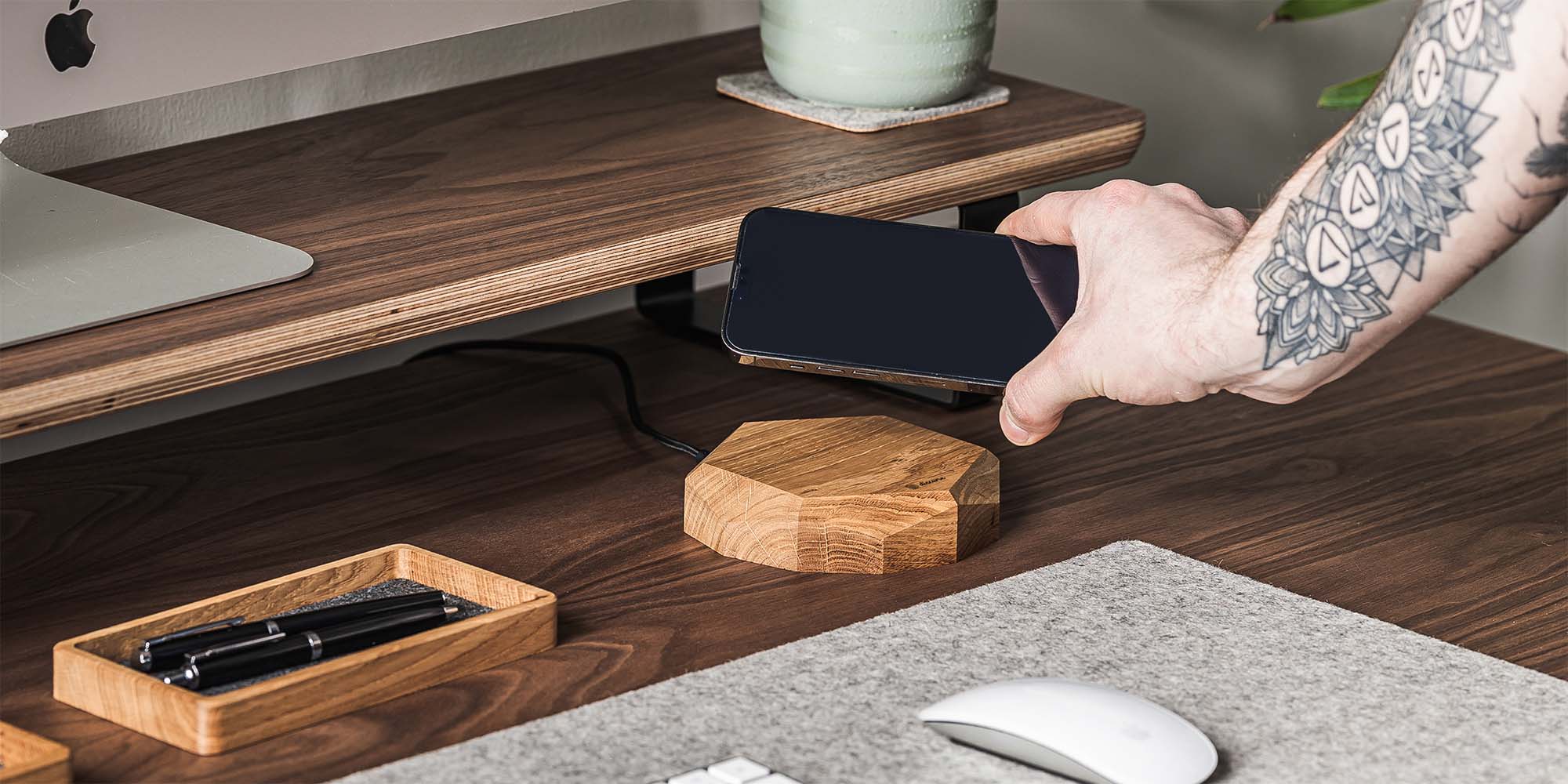 Holz wird seit jeher als Ikone des Designs betrachtet, und seine Accessoires dienen als einzigartige Elemente verschiedener Innenräume. Unser Holzladegerät verkörpert höchste Klasse und Individualität, die den stilvollen Charakter Ihres Zuhauses oder Büros unterstreichen wird.