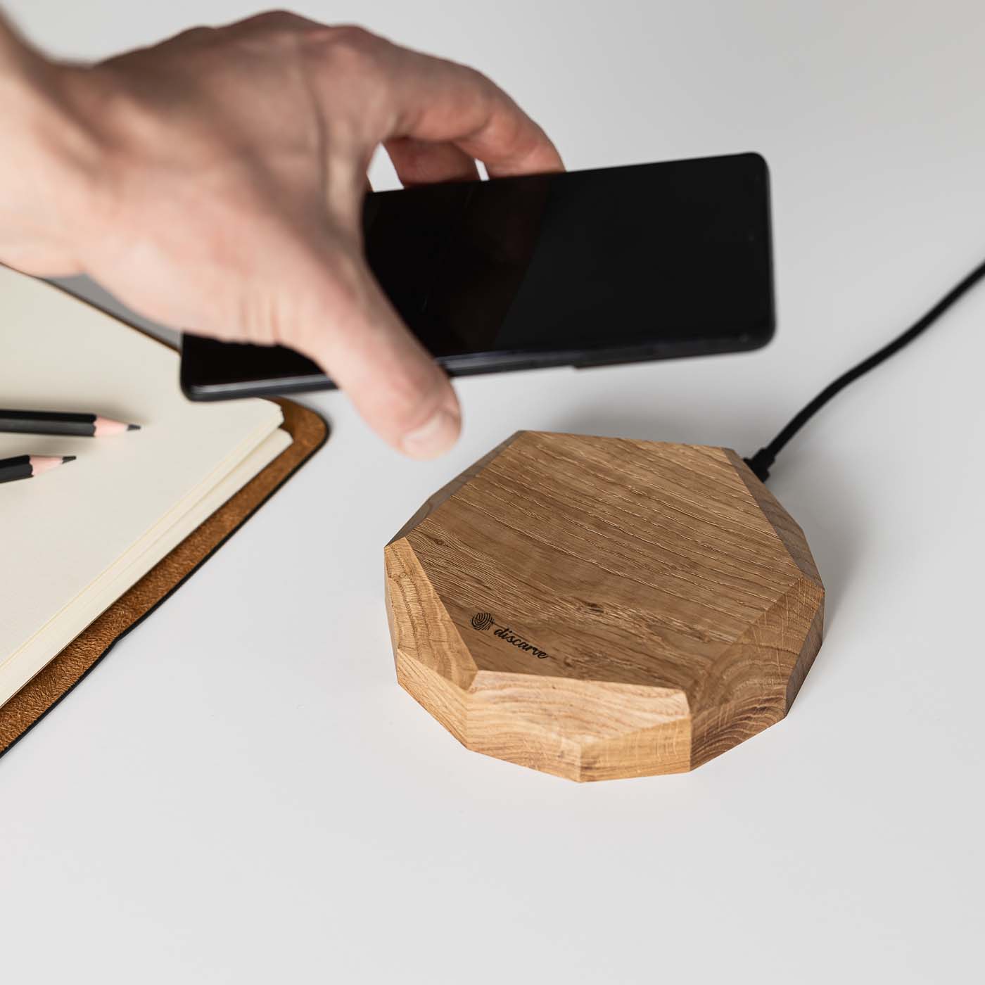 Geometrisches Kabelloses Ladegerät aus Eiche