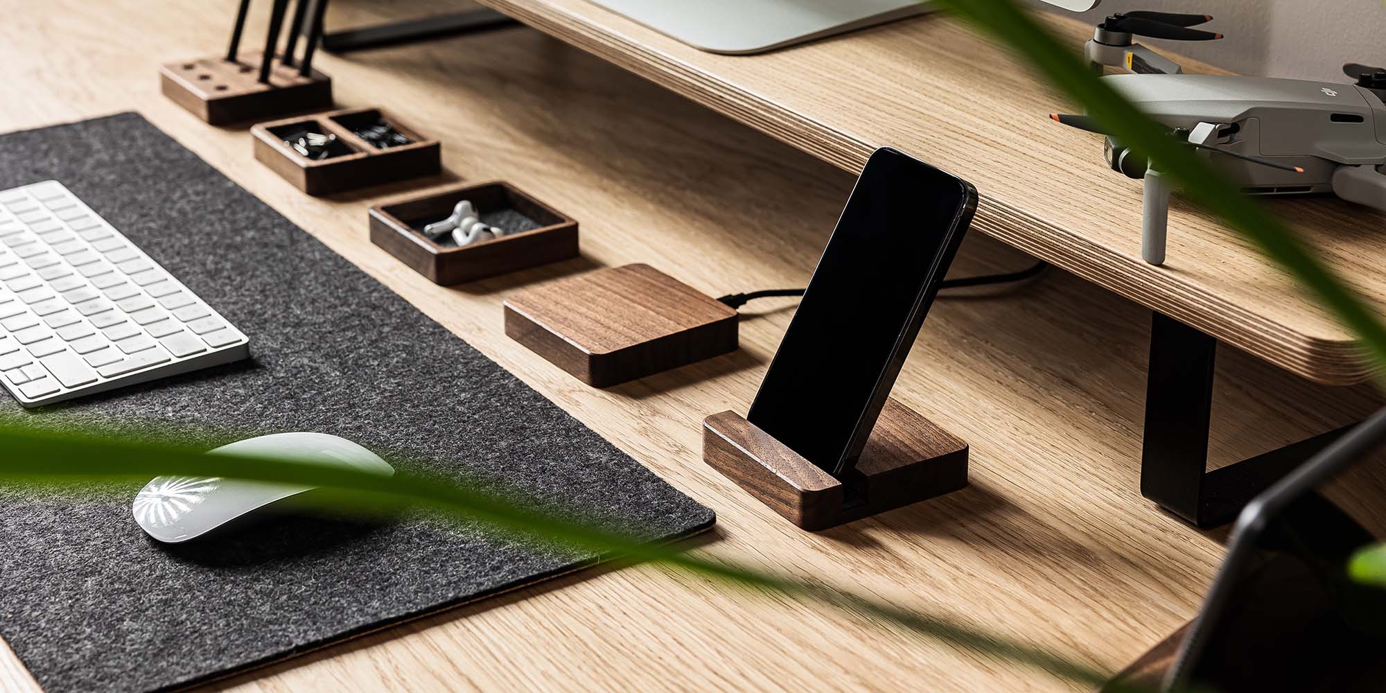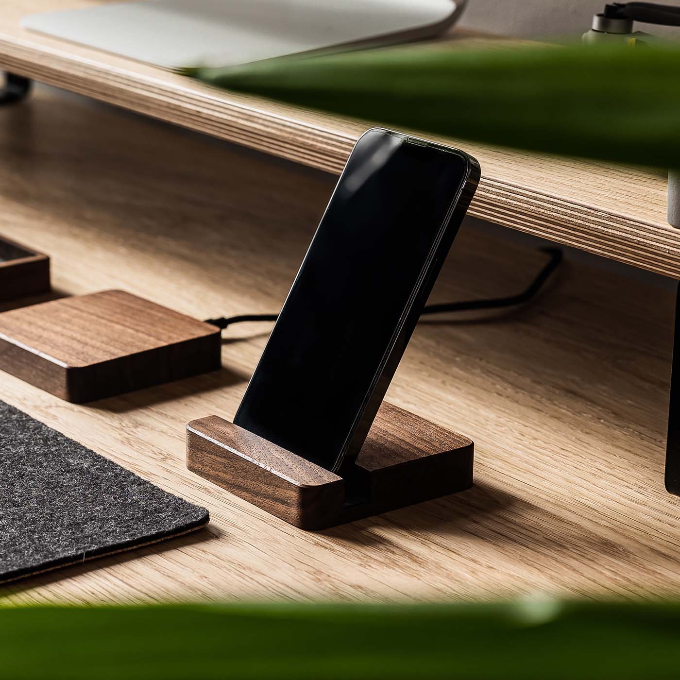 Dieser handgefertigte, abgerundete Handyständer aus amerikanischem Nussbaumholz verleiht Ihrem Zuhause oder Büro einen zeitlosen Look. Sein einzigartiges Design und seine Langlebigkeit machen ihn zu einem unverzichtbaren Bestandteil jedes Arbeitsplatzes. Genießen Sie die Schönheit des Holzes und den Komfort eines funktionalen Handyständers.