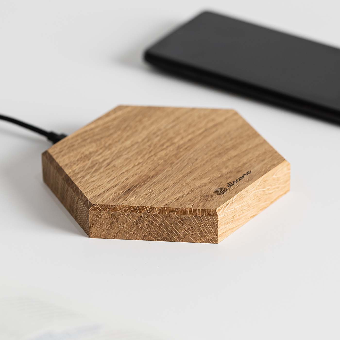 Hexagon Kabelloses Ladegerät aus Eiche
