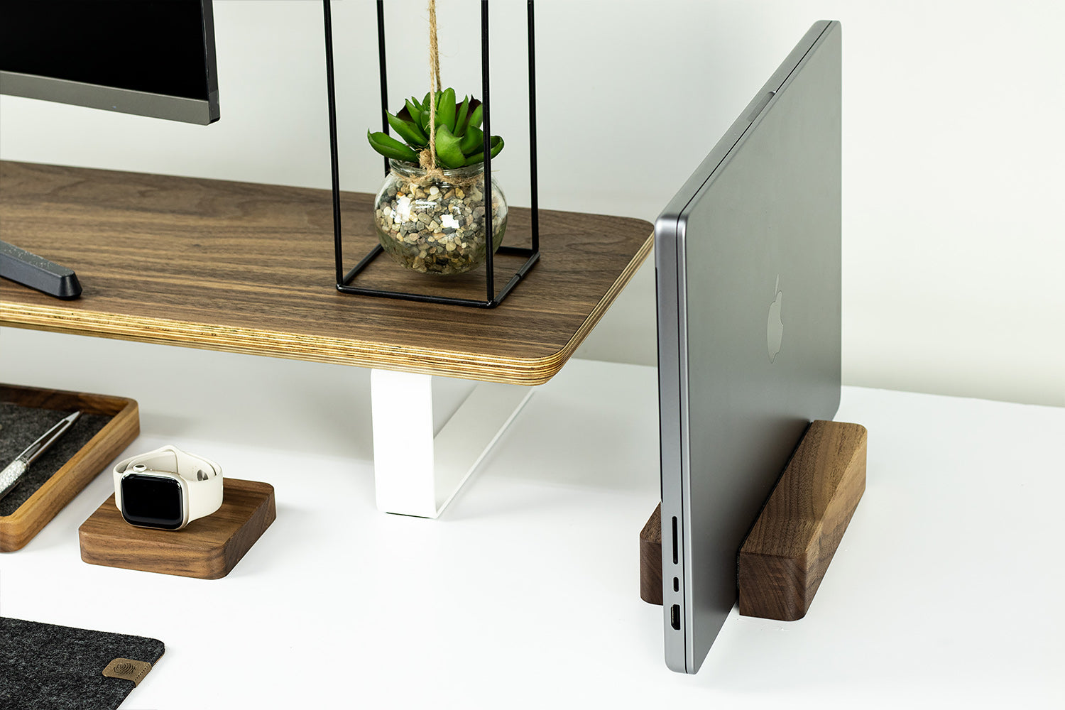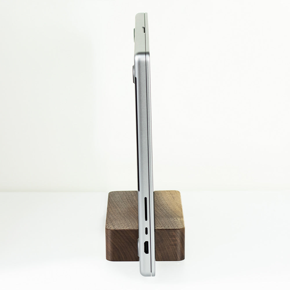 Betreten Sie ein Reich der Eleganz mit dem rechteckigen vertikalen Ständer aus erstklassigem amerikanischem Walnussholz. Er wurde speziell für die Aufnahme einzelner Geräte entwickelt – sei es ein Laptop, ein MacBook oder ein Tablet – und bietet eine elegante und effiziente Aufbewahrungslösung.