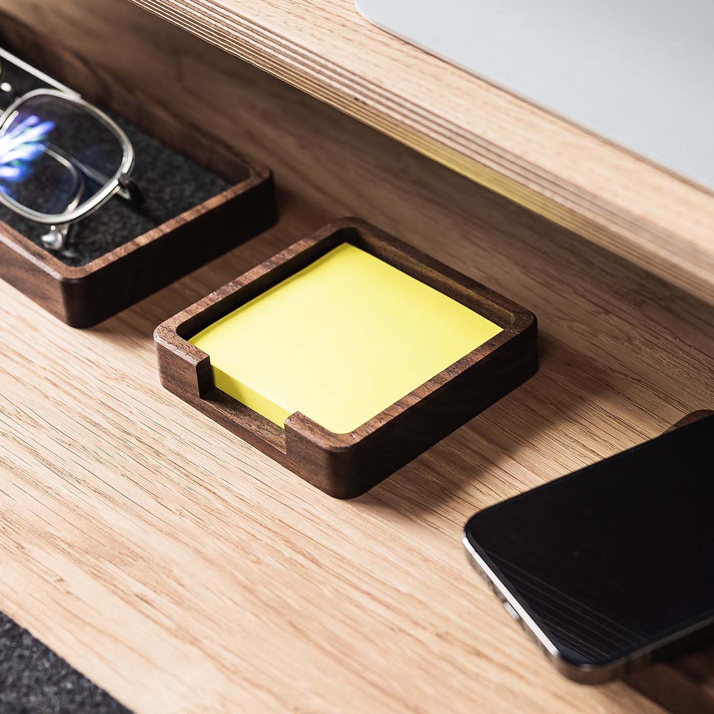 Ein minimalistischer Organizer aus Holz zur Aufbewahrung von Büronotizen (Post-Its). Dies ist ein weiterer von der Natur inspirierter Vorschlag von Discarve, der Ihnen die Organisation Ihres Traumarbeitsplatzes ermöglicht – mit einzigartiger Ästhetik und neuer Funktionalität sogar für einen kleinen Schreibtisch.