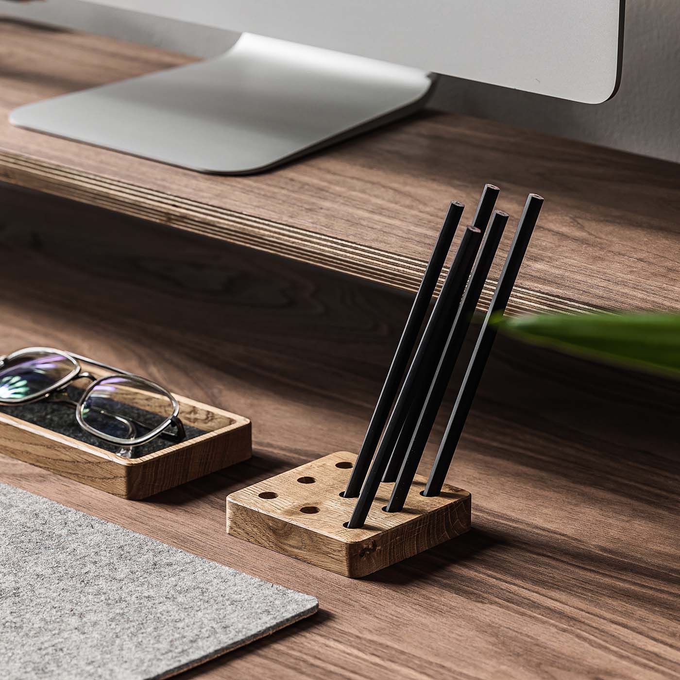 Quadratischer Organizer mit Stifteständer, schwarze Eiche