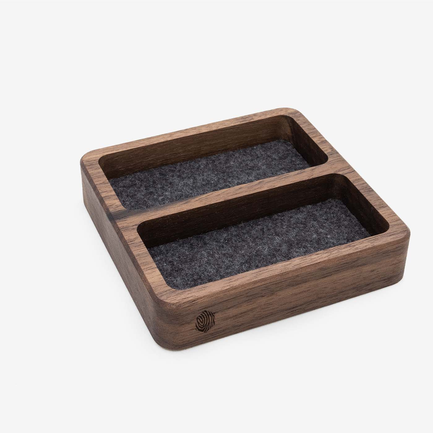Quadratischer Organizer mit zwei Kammern, amerikanischer Nussbaum