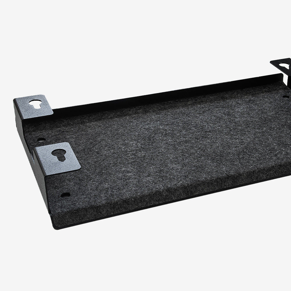 Filz - Ein bemerkenswertes Merkmal dieses Regals ist seine Filzauskleidung. Der weiche und berührungsfreundliche Filz bietet einen wirksamen Schutz vor Kratzern für darauf platzierte Gegenstände, erhöht deren Sicherheit und bewahrt ihre Qualität.