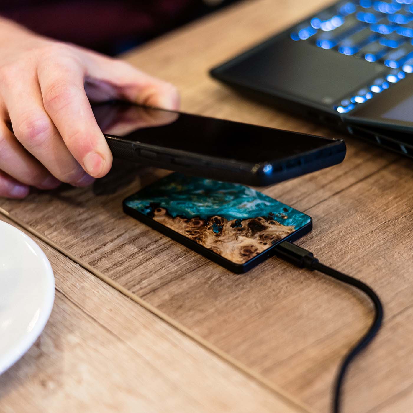 Super Slim Charger – jedes Stück Holz, jede Farbkombination – bleibt immer einzigartig, kein Muster wiederholt sich. Heute bieten wir Ihnen Produkte, in denen Sie Leidenschaft und etwas Einzigartiges finden. Das Harz ist die perfekte Ergänzung und verschmilzt perfekt mit seiner Struktur.